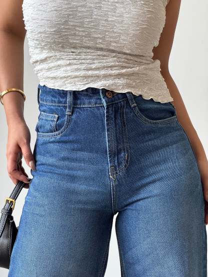 Expertly crafted, these Blue Destroyed Hem Fade Wide Leg Cropped Jeans are designed to elevate your denim game. The distressed hem and faded wash add a touch of edge, while the wide leg and cropped length provide a comfortable and stylish fit. Upgrade your wardrobe with these must-have jeans.