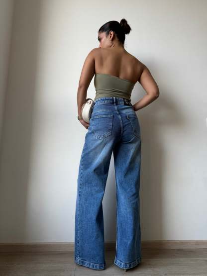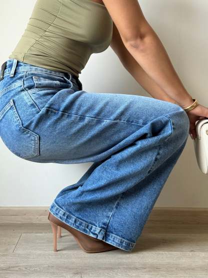 These Classic Blue Wide Leg Jeans are a staple in any wardrobe. With their timeless color and flattering wide leg cut, they offer both style and comfort. Made with high quality denim, they are durable and long-lasting. Perfect for any occasion, these jeans are a must-have for any fashion-savvy individual.