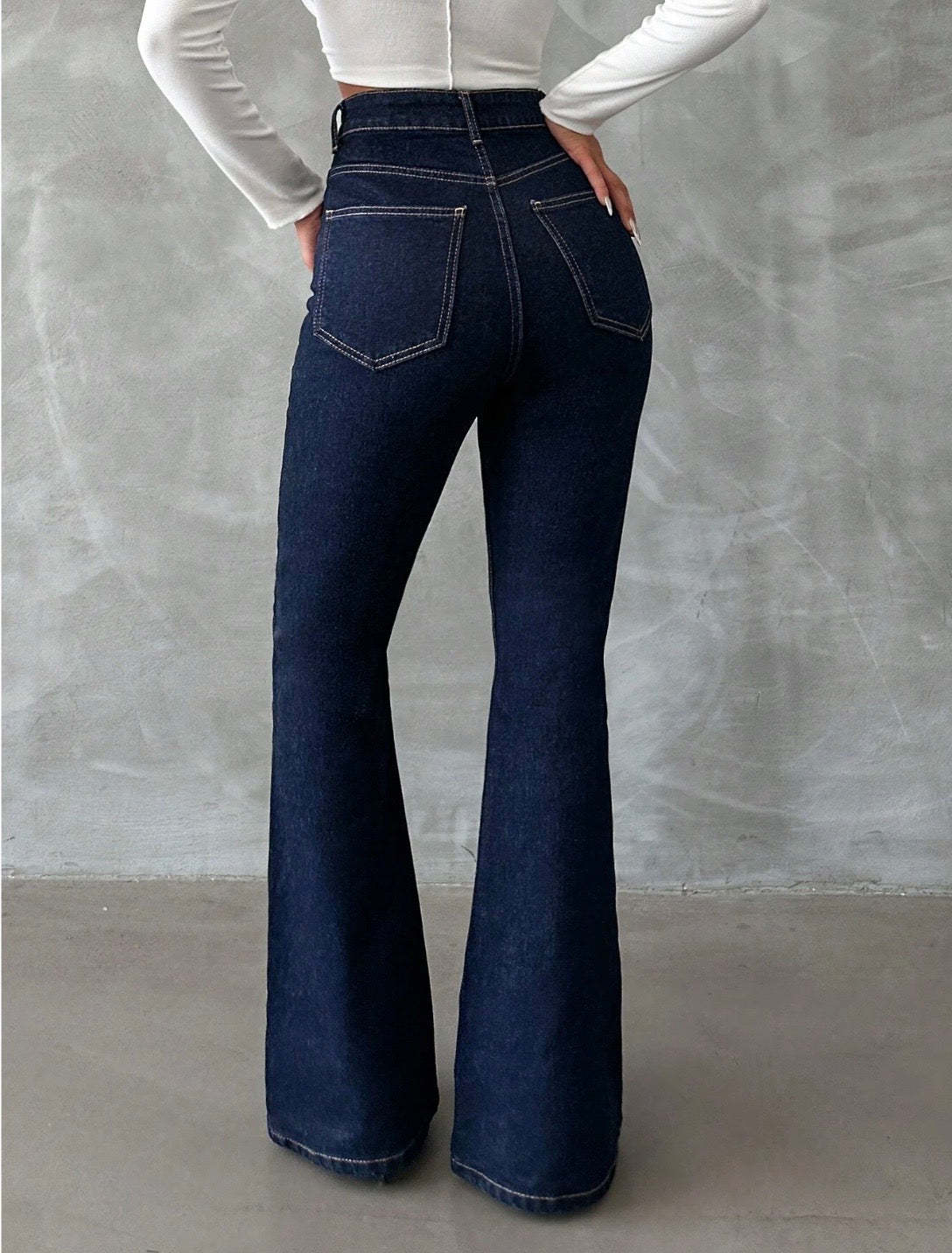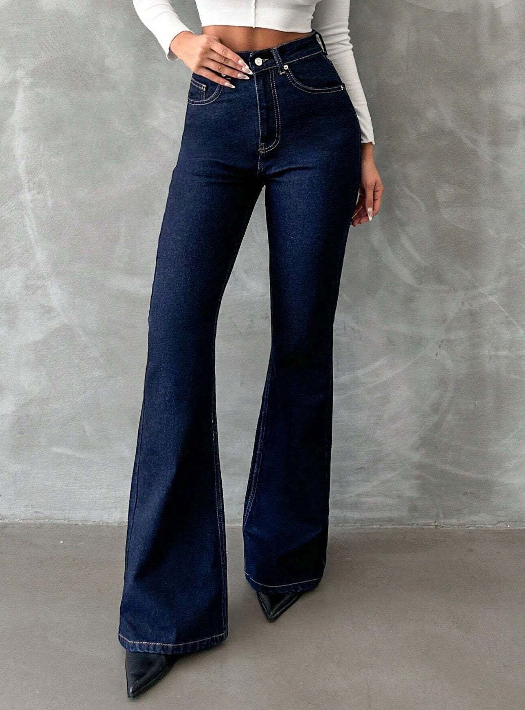 The Indigo Navy Flare Fit Jeans blend timeless 70s-inspired styling with contemporary comfort. Featuring a flattering high-rise waist and a dramatic flare silhouette, these jeans are crafted from a stretch-infused cotton blend that moves with you. The deep indigo navy wash adds a sleek, polished edge—perfect for dressing up or down. Made with durable 11.75 oz denim and a 3/1 Right-Hand Twill weave, these jeans offer structure with flexibility.
